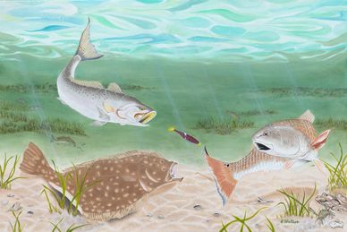 Another take on the Texas Inshore Slam. I call it "The Winner is the Dinner" for the obvious reason; the fish that reaches the lure ends up in the pan. One of my favorites!