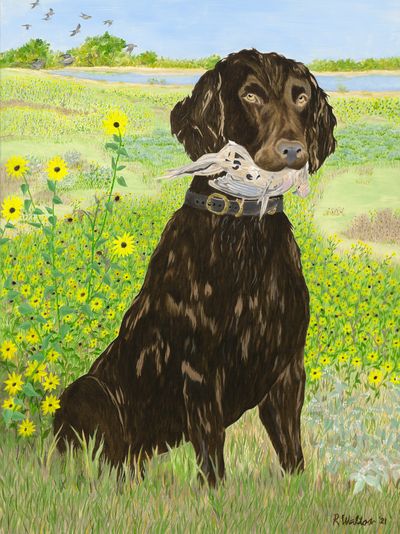 Commissioned Works – I usually have a commission project or two on tap. I don't accept all of the requests I get, but sometimes big things come from someone's request. For instance, the Bevo painting was a commission. Text or email me if you are interested in a commissioned painting of your subject. They usually cost between $2,500 and $8,000, depending upon the size, whether I have to travel to take resource photos in the field/water and what kinds of pictures of your subject you may have available. The painting of the Boykin Spaniel to the right of this section was a commission painted from photos taken by the owner.