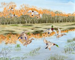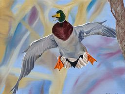 A big mallard drake tumbling through the limbs of flooded pecans and oaks may be the ultimate waterfowling experience. One of my earliest works; I still love it!